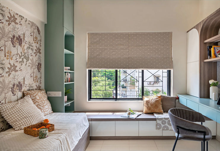 Smart design meets comfort with a pull-out bed, maximizing floor space while keeping the room open and spacious. The wall-to-wall window seating, seamlessly connected to a study table, creates the perfect nook to read, relax, or work in natural light.